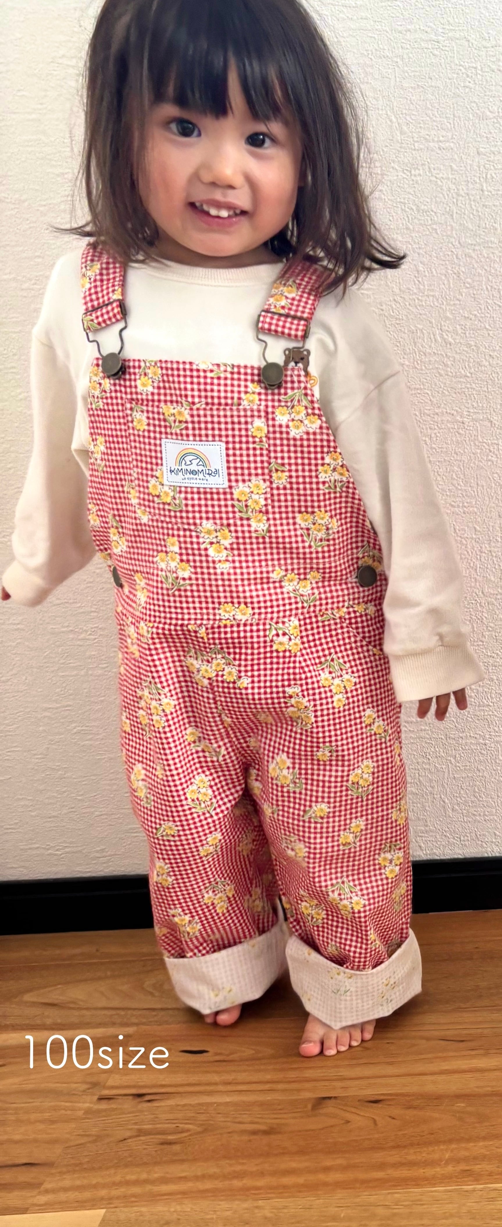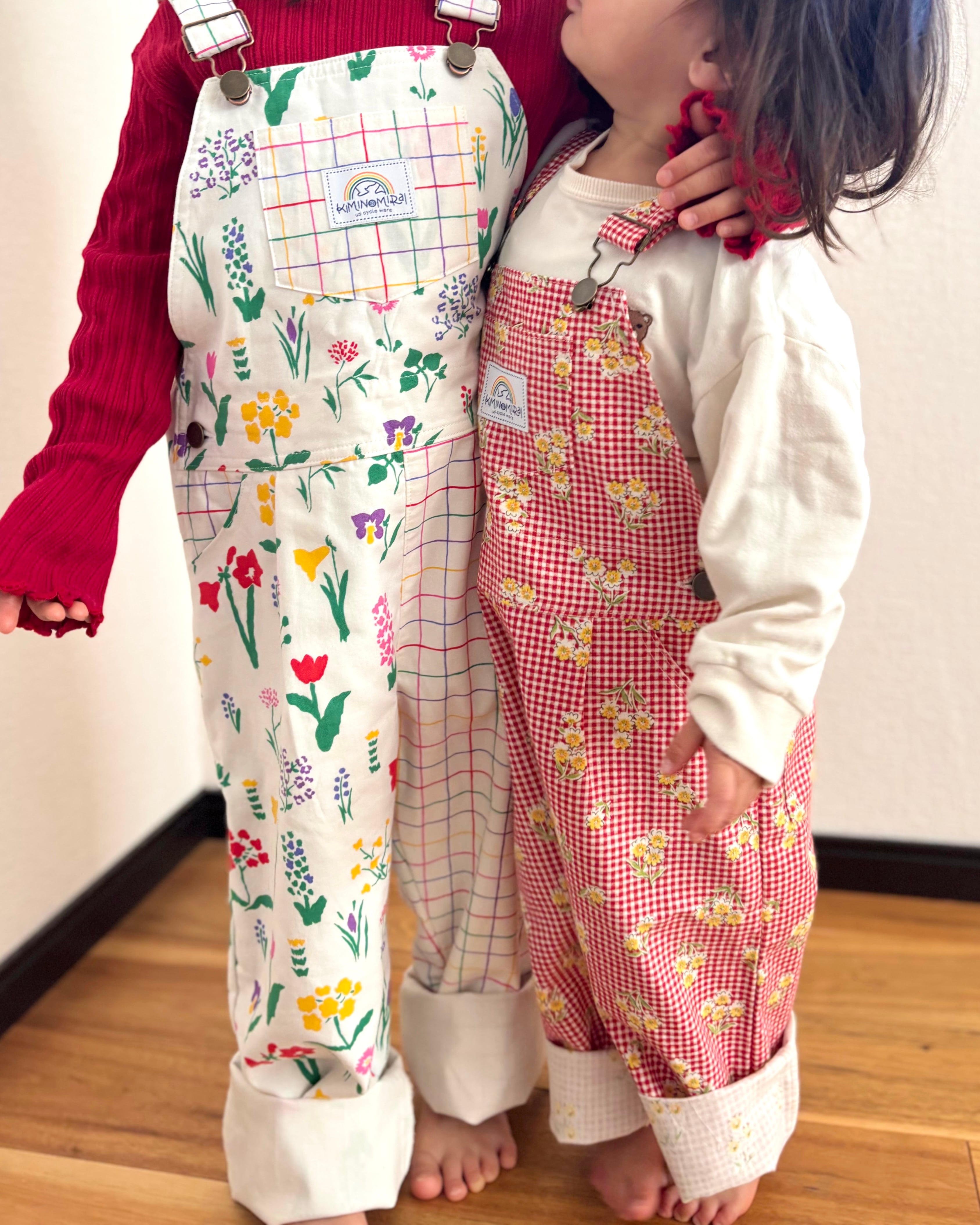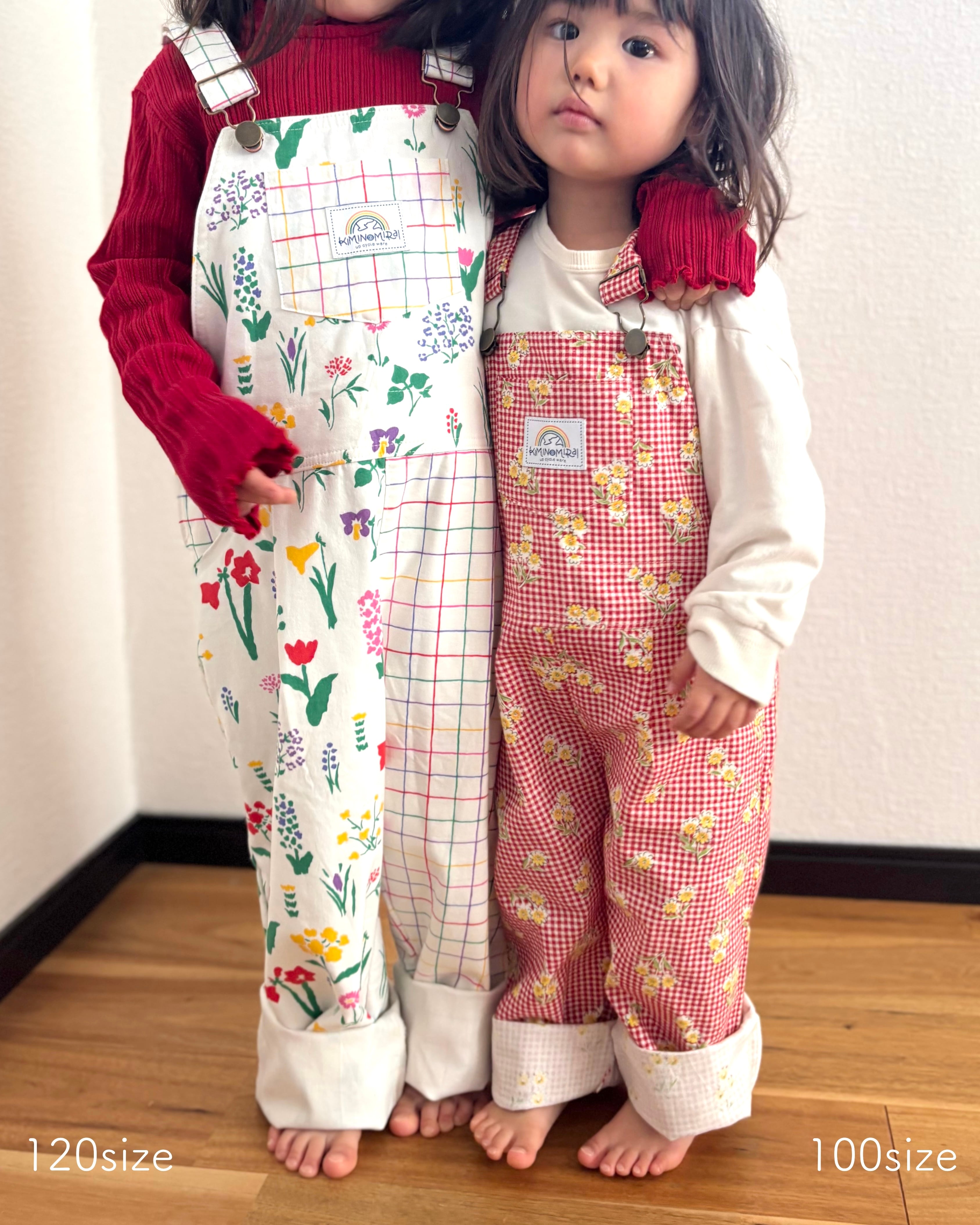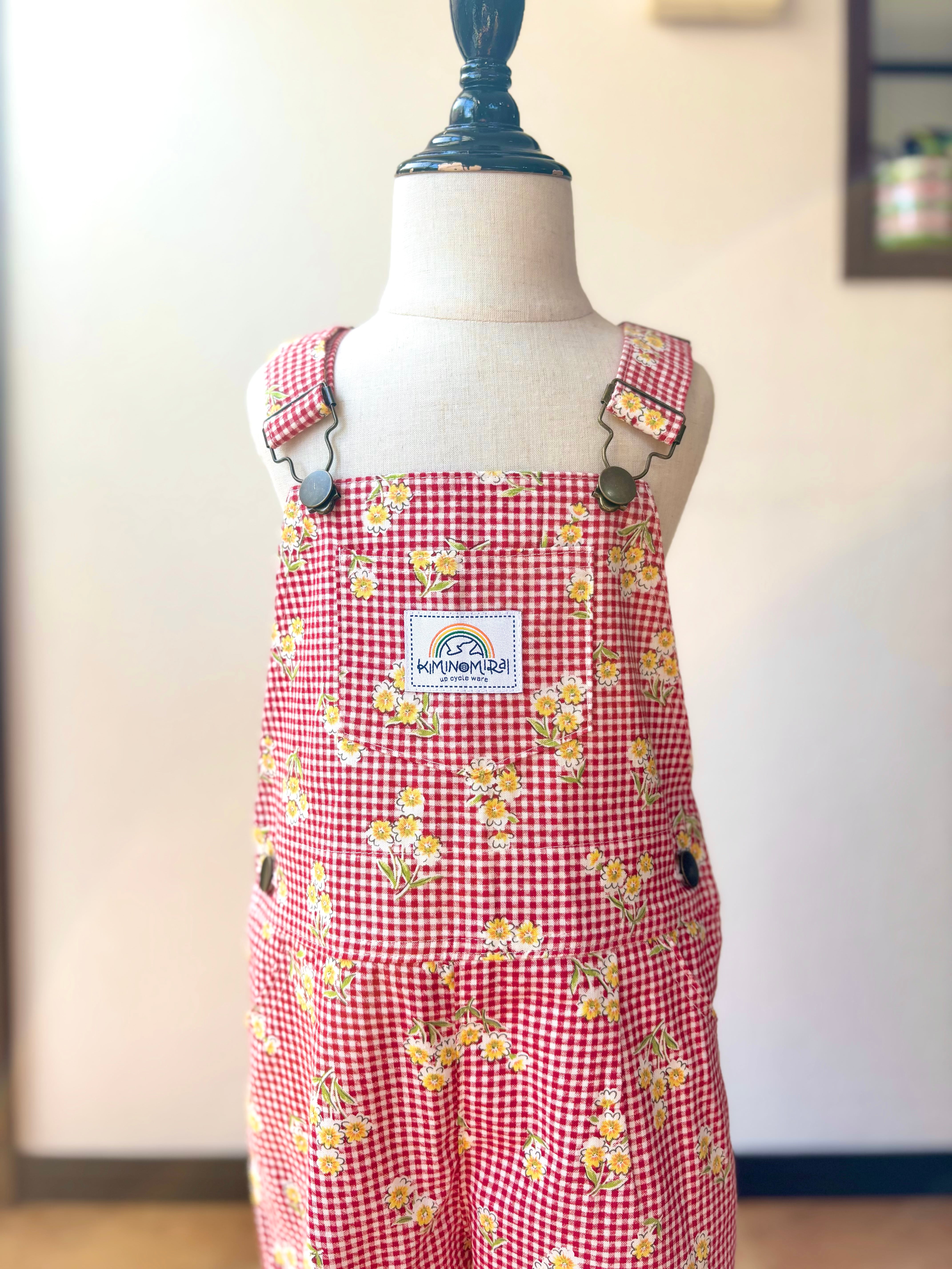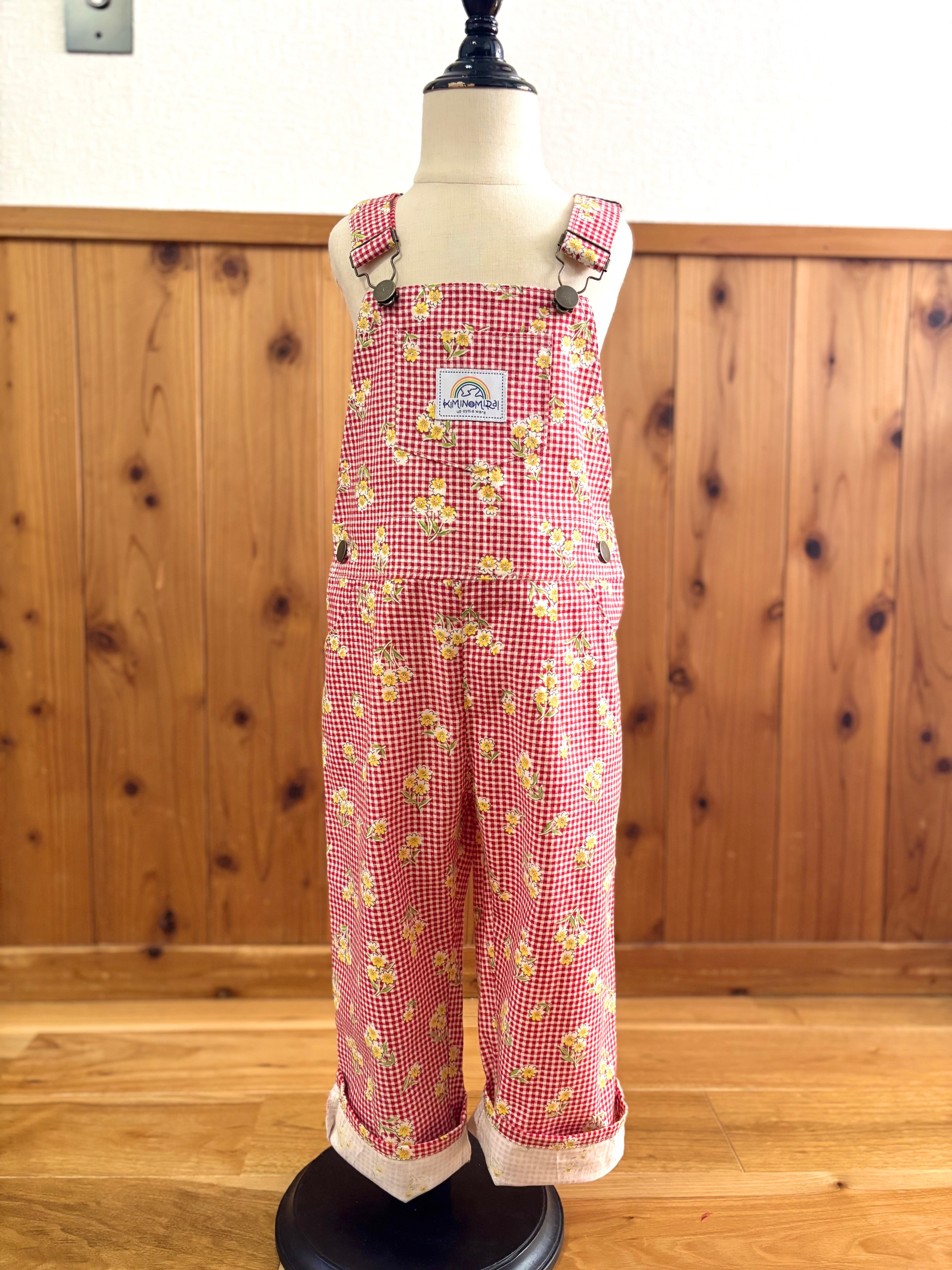 【original】upcycle オーバーオール/gingham flower<100>